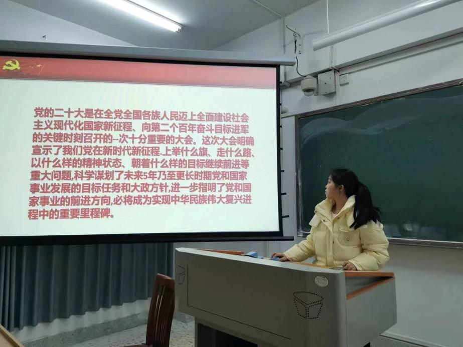 本科生信息统计党支部书记闾可结合二十大报告的具体内容指出,党的二十大,是在我们党全面建设社会主义现代化国家,向第二个百年奋斗目标进军新征程,这个关键时期召开的一次十分重要的大会。从党的二十大报告原文出发,结合党的二十大报告诞生记,为支部全体成员系统梳理了党的二十大报告中提出的新思想、新论断。