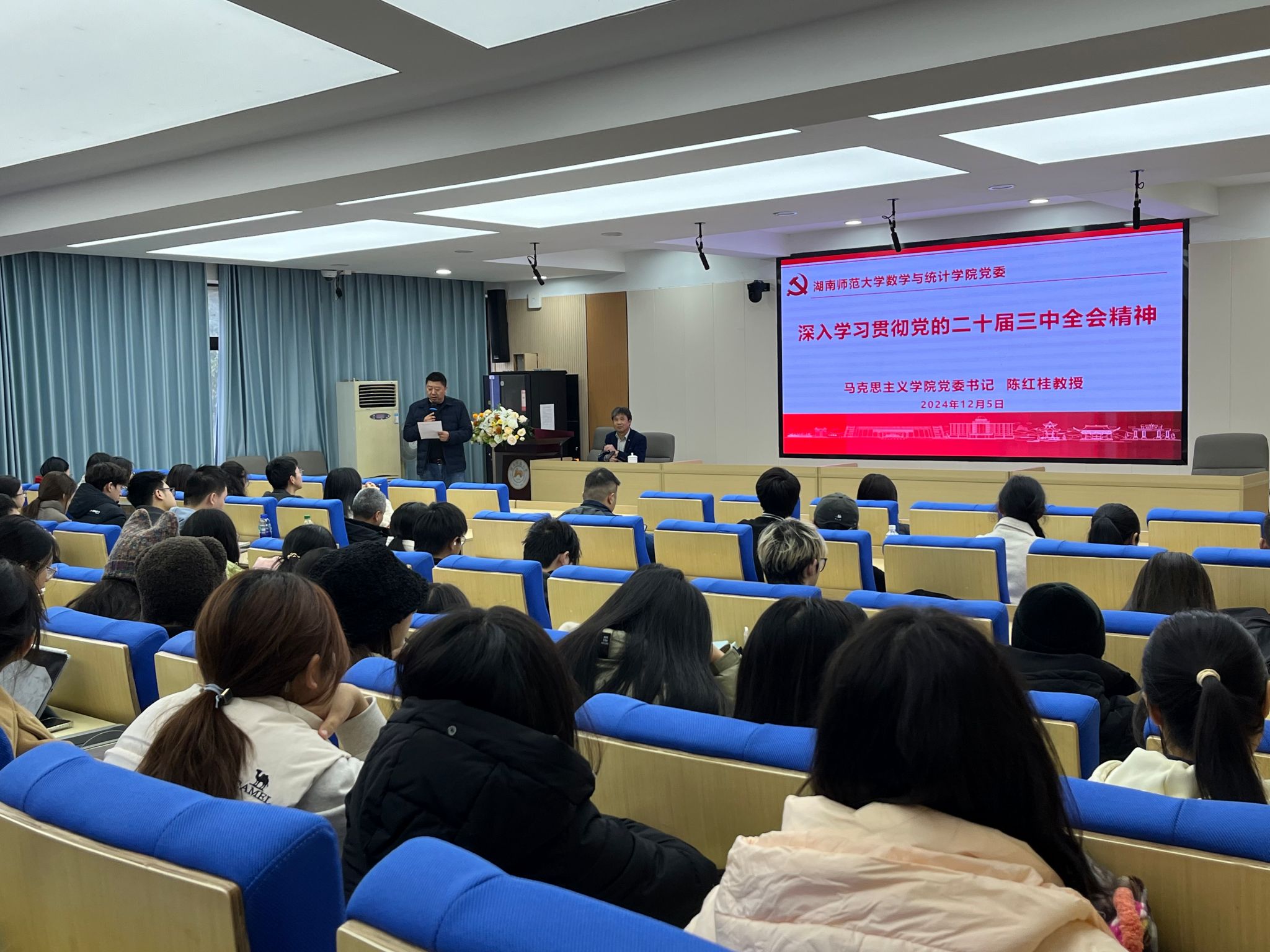 12月5日下午,为深入学习贯彻党的二十届三中全会精神,英国威廉集团官网309报告厅举行专题宣讲报告会。校宣讲团成员、马克思主义公司党委书记陈红桂教授受邀作宣讲报告。全体院领导、科室主任以及师生代表200余人参加,宣讲会由专职组织员覃志斌老师主持。
