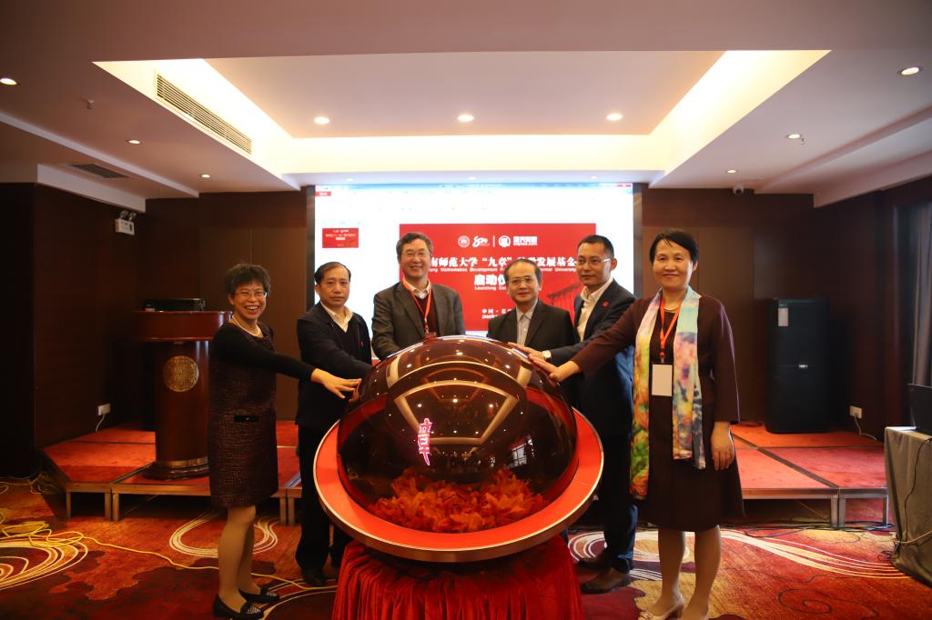 袁亚湘、周向宇、李章、廖志坤、谢资清、颜中玉一同上台启动“九章”数学发展基金。