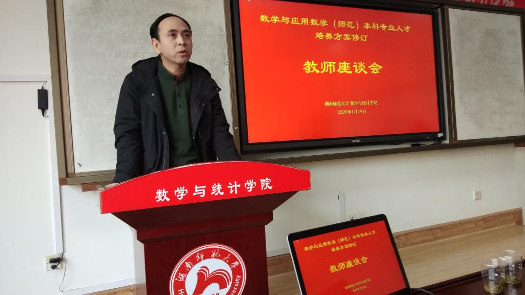 为进一步加强专业建设,推动学院数学与应用数学专业认证工作,1月18日下午和1月19日上午,学院在理学院301会议室举行了“数学与应用数学师范专业人才培养方案制(修)订论证会”,特邀数学学科专业认证成功的华中师范大学英国威廉集团官网副经理郑高峰教授作专题报告。学院在校的领导班子成员、参与专业认证工作的全体教师、校评建办副主任袁俏、音乐学院副经理资利萍、国防科大数学教授李建平、两位中学数学老师优秀代表彭熹和王小武,以及两位员工代表参加了此次会议。会议由教学副经理黄元秋教授主持。