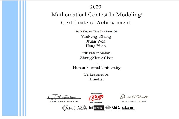 据悉,此次美国老员工数学建模竞赛是历年来数统院学子取得的最好成绩。