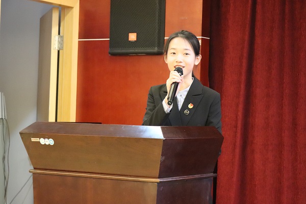 获奖员工代表2017级数学与应用数学专业李婧同学发言。她对员工们的关怀和学院的培养表达了衷心的感谢,并表示将带着学院和员工的期望继续奋发向上。