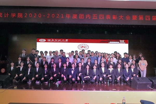 高旗举宣读《数统院2020-2021学年五四团内评优的决定》。各位嘉宾为受表彰的集体和个人颁奖。