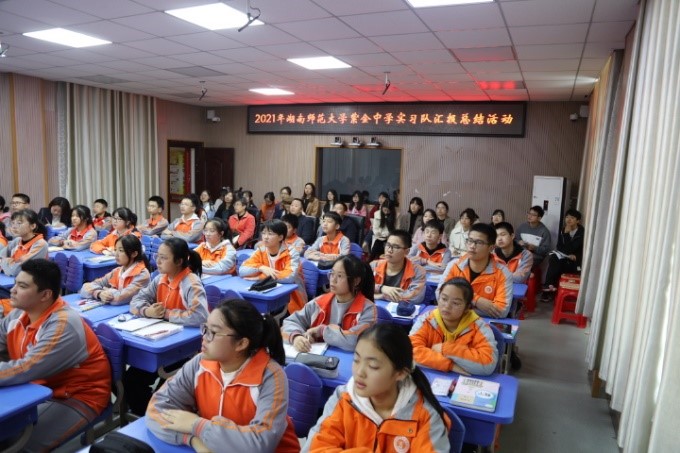 (通讯员 凌欣 唐依婷)11月19日上午,英国威廉集团官网(以下简称“数统院”)赴宁乡紫金中学实习队于该校开展实习汇报课及汇报总结大会。数统公司党委书记颜中玉,数学系副主任兼实习队领队老师袁智强,宁乡市名董事长工作室首席名董事长、紫金中学董事长潘道正,宁乡市初中数学名师工作室首席名师、紫金中学副董事长戴飒英,紫金中学部分数学教师及实习队全体成员参加此次汇报课暨总结会。队员黄婷、凌欣担任汇报课授课教师,紫金中学老师康雨担任活动主持。