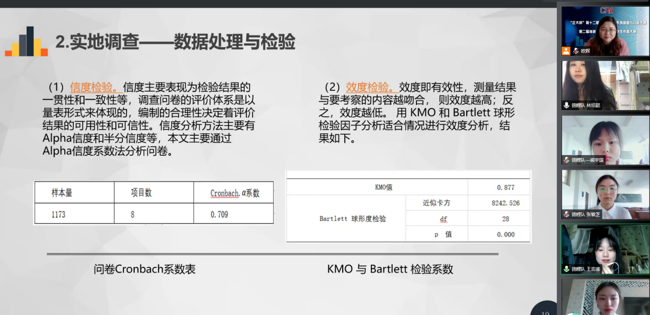 欧辉老师首先致辞,拉开了本次大赛的帷幕。欧老师向问卷网、教务处、双创办和数统院的领导对本次比赛的支持表示由衷的感谢。郭水霞副经理介绍了此次大赛流程、指出大赛规则,然后对参赛选手的积极参与和辛苦准备表示感谢后,比赛环节正式开始。受疫情影响,此次校赛采取线上答辩的形式,参赛选手与评委老师远程互动。本着公平公正的原则,各位评审老师对参赛团队的调查问卷、论文、答辩情况等进行综合评审。
