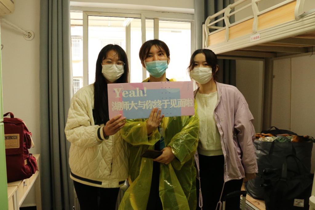 8点,陆续有新生前来报到。测量体温、查验校园绿码、核酸检测结果、查验入学资格、领取校园卡、员工公寓入住、办理报到手续,新生们在志愿者的引导和学校各部门工作人员的协助下,顺利完成入学手续办理、相关资料领取等事项,并纷纷拿着展板在报到地点前合影,纪念从今日起开启的崭新而又美好的研究生生活。