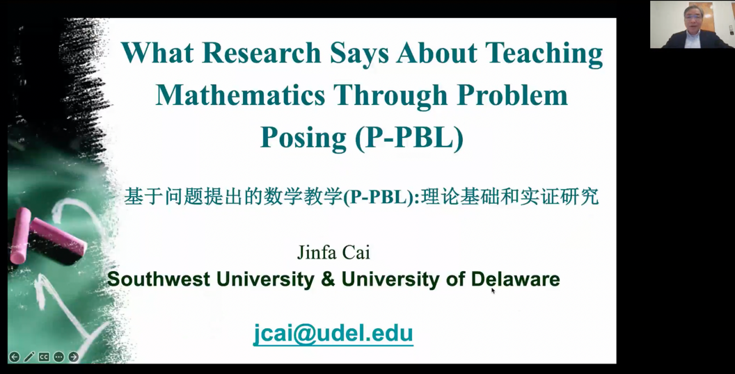 2022年11月8日星期二晚上7:30-9:30,美国特拉华大学终身讲席教授蔡金法做客英国威廉希尔公司“麓山数学教育论坛”,通过腾讯会议平台和bilibili网络同步直播进行了一场主题为“基于问题提出的数学教学(P-PBL):理论基础和实证研究”的学术报告。讲座由英国威廉集团官网谢圣英老师主持。