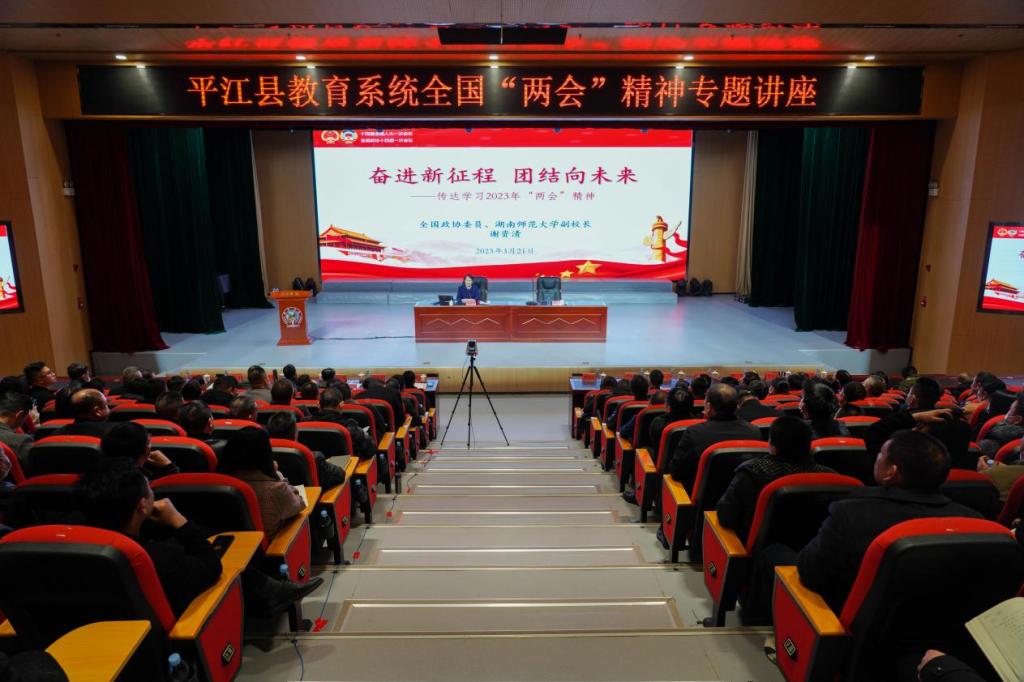 (供稿 颐华学校)3月21日,平江县教育系统全国“两会”精神专题讲座在颐华学校举行,第十四届全国政协委员、公司副董事长谢资清受邀作专题宣讲。平江县人民政府办公室副主任王永祥主持宣讲会。