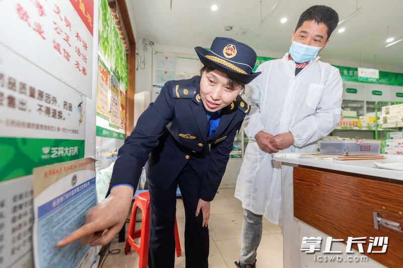 黄丽给店主讲解《长沙市门前市容环境卫生责任书》条例。 长沙晚报全媒体记者 董阳 摄