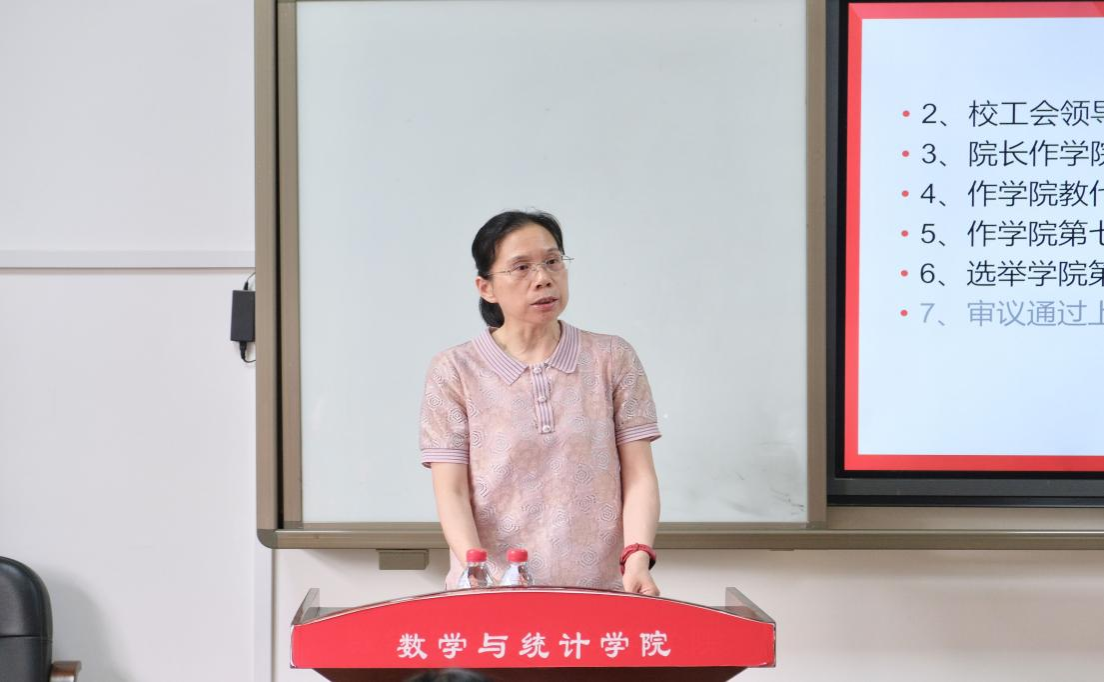 接下来数统院经理李利平作了学院工作报告。他以数统院近两年的工作情况为导向,指出学院行政领导班子在改善学院条件,提升师生幸福感,加强学科平台建设,推进科技创新服务,规范员工公司产品管理,培养高质量人才等方面取得的成就。随后,李利平经理对第八届教代会工作提出三点展望:第一,进一步加强理论学习,强化思想引领;第二,进一步强化民主管理与监督,提高提案办理质量;第三,进一步加强自身建设,提高教代会委员的履职能力。