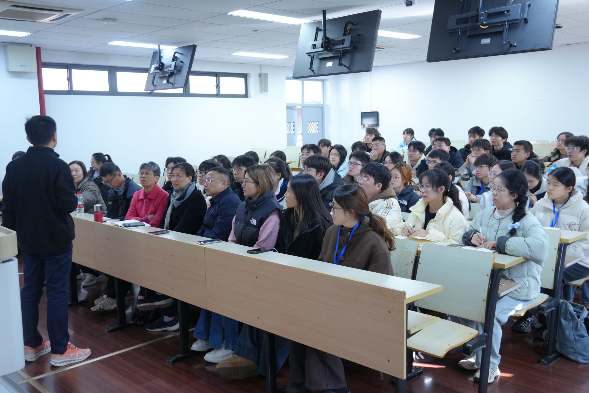 复旦大学数学科学学院教授兼经理助理王凯详解本硕博一体化培养模式,为拔尖人才培养提供清晰参考;上海财经大学统计与数据科学学院经理冯兴东围绕 “数据诊所”特色项目,分享科研实践育人的具体路径;南京大学数学公司党委副书记张巍介绍特色育人活动运行机制,为育人工作优化提供新思路。师生双方在深度互动中互学互鉴,既明晰了发展方向、增强了学习动力,更实现了共同提升。