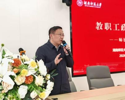 会议最后,党委副书记涂榉耀通报了当前的员工就业情况。他通过详实的数据分析了本届毕业生面临的就业形势与压力,并呼吁全体老师能够更加关心员工、深入员工,在学业指导、职业规划及心理疏导等方面给予员工更多帮助,形成全员育人合力,助力员工成长成才。