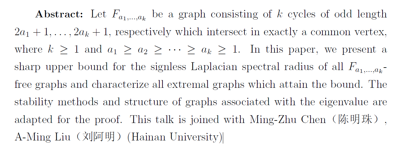 报告题目:The signless Laplacian spectral radius of graphs without intersecting odd cycles