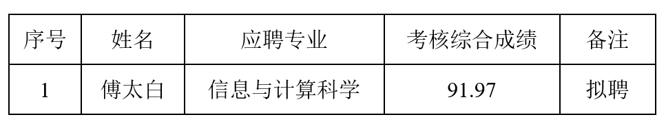 根据学校专任教师招聘相关文件,经学院专任教师招聘考核小组考核、同行专家学术水平评议,综合“学术评议”和“教学水平及综合素质考核”成绩,公司党政联席会议研究,现将考核结果公示如下:
