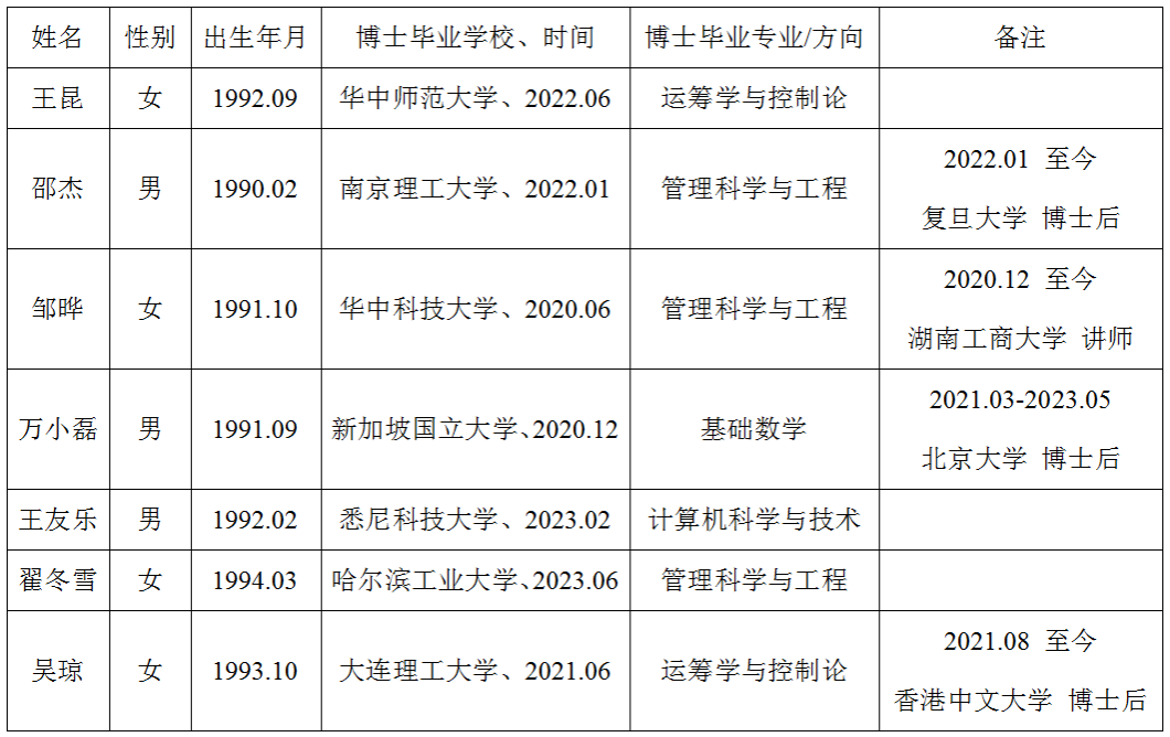 按照《英国威廉希尔公司2023年专任教师公开招聘公告(第二批)》的规定,经审查应聘博士提供的材料,下列人员符合公司专任教师公开招聘报名条件,现予公示(见附表),如有异议,请于2023年11月16日下午17:30前向公司党委办反映。
